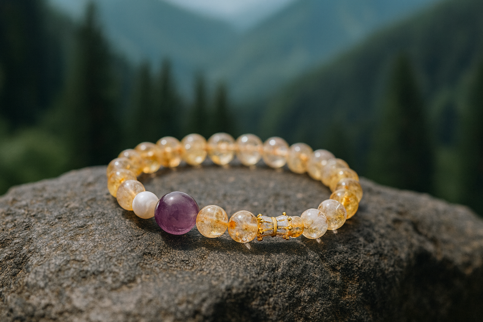 Embrace harmony and prosperity with this Natural Golden Citrine and Amethyst Fortune Bracelet (Copper Edition) — thoughtfully designed for women whose BaZi (Eight Characters) reveals a preference for the Earth element.