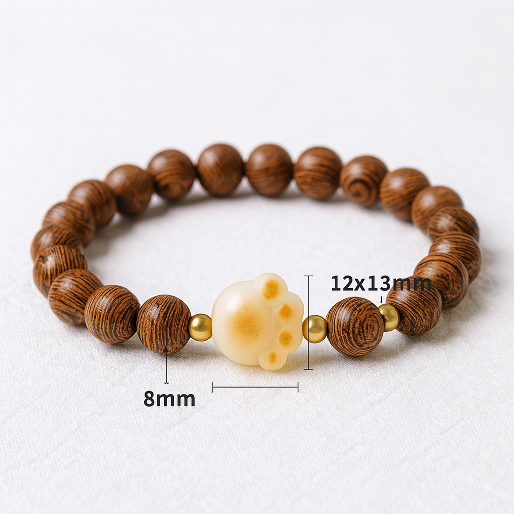 Gracefully crafted from Chicken-Wing Wood Bodhi beads and accented with a charming golden cat paw centerpiece, this bracelet embodies a perfect fusion of natural warmth and elegant charm. Designed especially for those whose BaZi (Eight Characters) favor the Metal element, it serves as a powerful talisman that balances energy and enhances personal fortune.