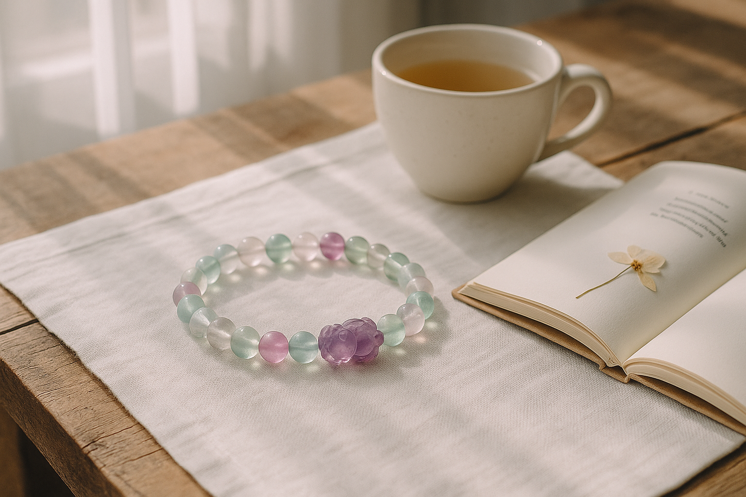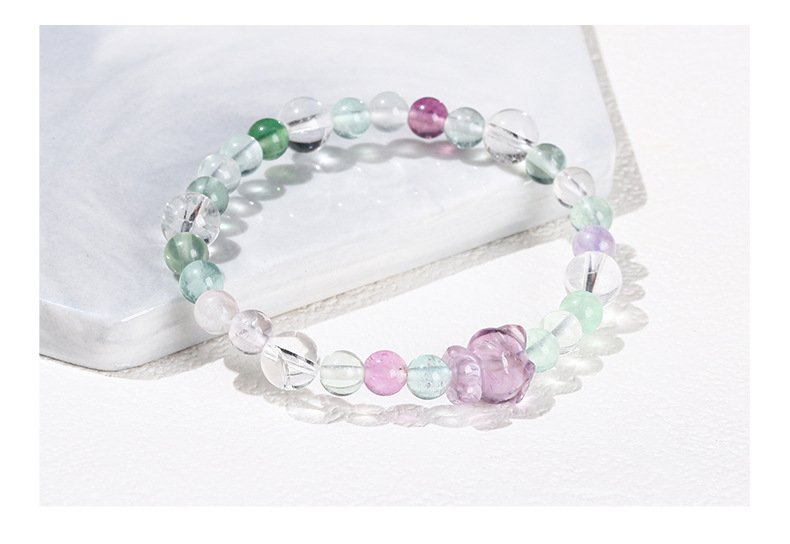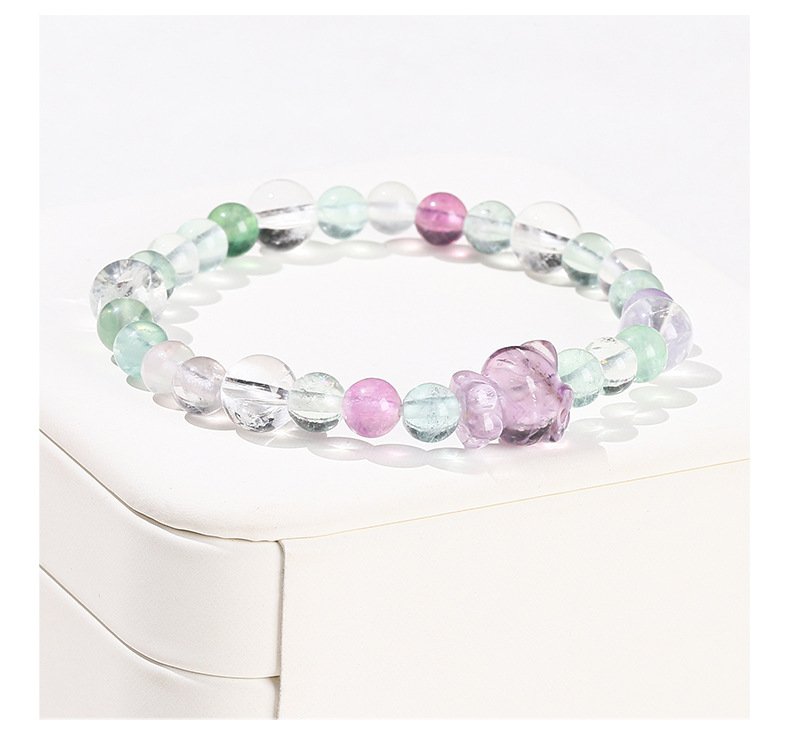 Gracefully designed for women whose BaZi (Eight Characters) favor Metal, this exquisite bracelet blends the serene beauty of natural fluorite with the gentle charm of amethyst, featuring an adorable Hello Kitty charm. Each bead radiates soft hues of violet, green, and crystal-clear light — harmonizing elegance and energy in perfect balance.
