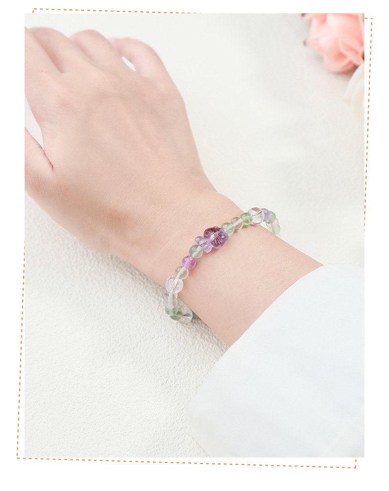 Natural Fluorite & Amethyst Hello Kitty Bracelet