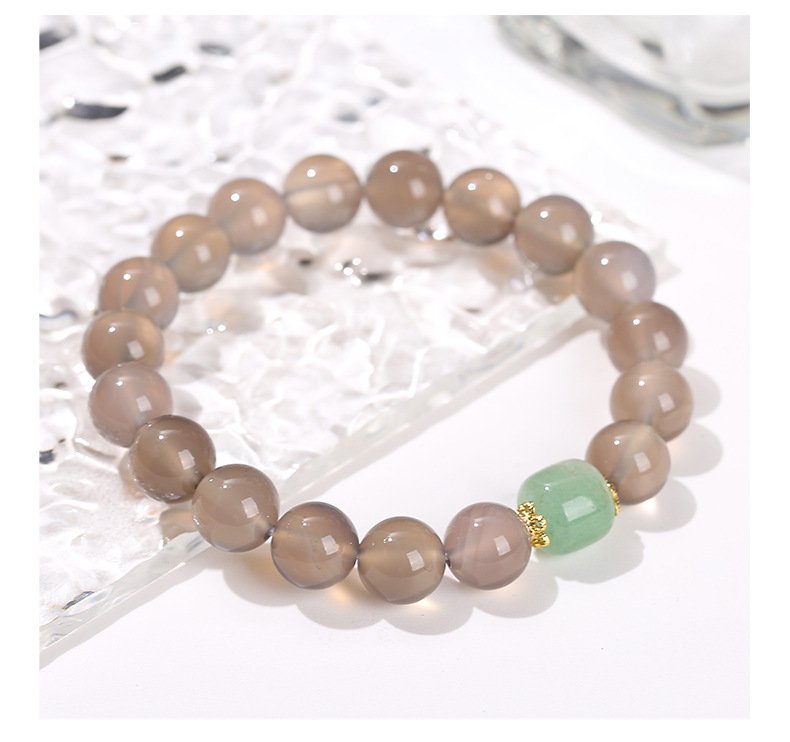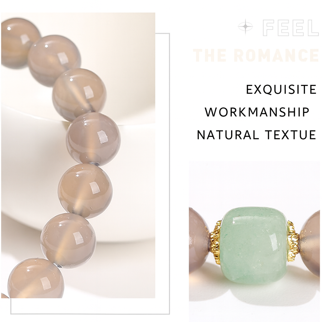 Embrace calmness and elegance with our Natural Gray Agate & Aventurine Bracelet, a piece meticulously crafted for women whose Five Elements (Wu Xing) favor Water energy. This exquisite bracelet combines the gentle, translucent tones of gray agate with the soothing green of aventurine, harmoniously accented with delicate golden details.