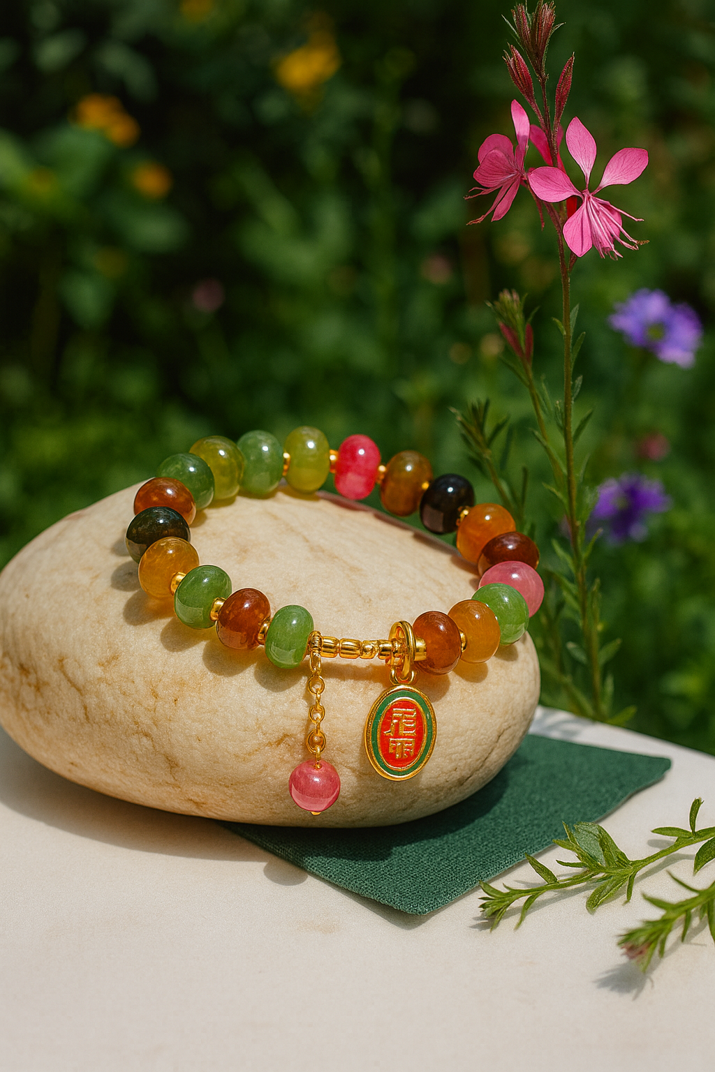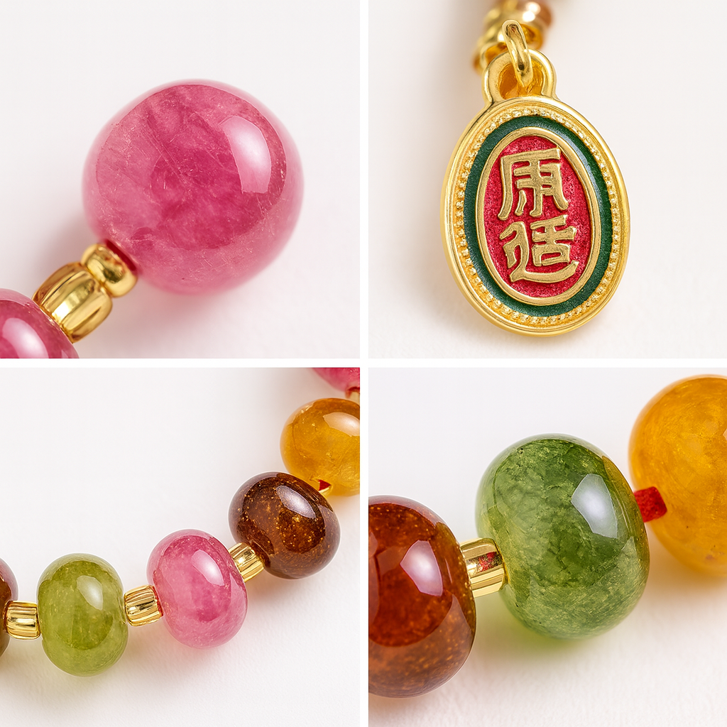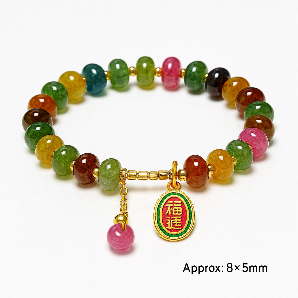 Embrace the essence of balance and prosperity with our Radiant Harmony Tourmaline Agate Bracelet, meticulously designed for women whose BaZi (Eight Characters) favor the Earth element. Each bead, crafted from high-quality tourmaline-colored agate, reflects a spectrum of natural beauty — blending rich greens, honey yellows, warm browns, and rosy pinks — symbolizing harmony, abundance, and emotional balance.