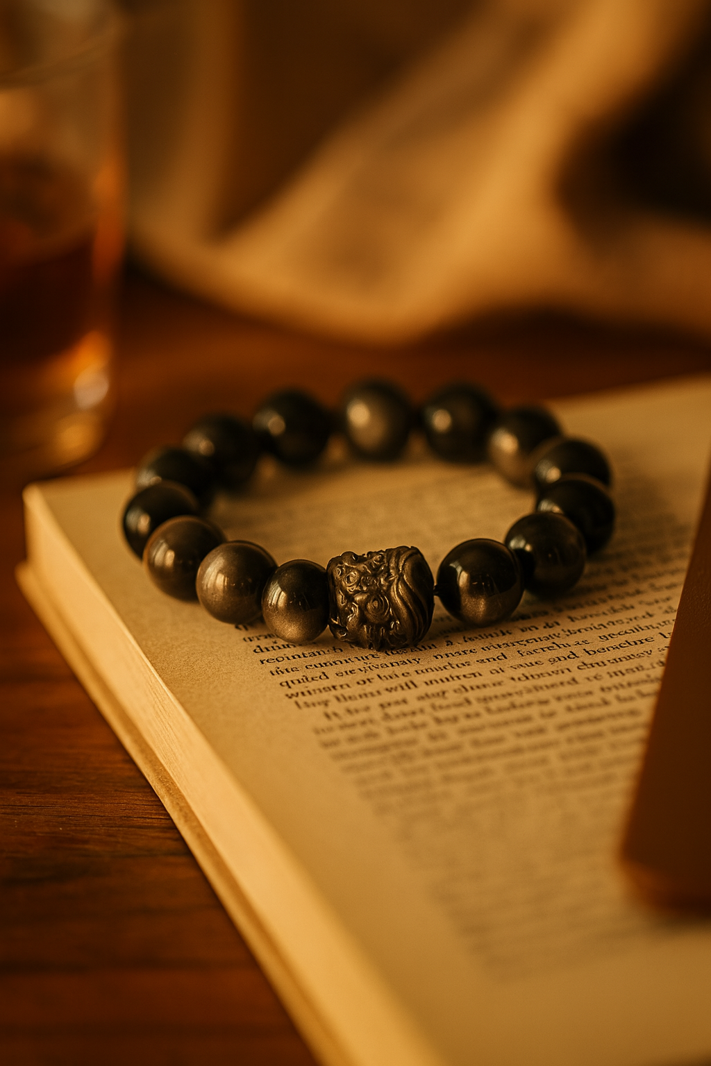 This exquisite Silver Obsidian Pixiu Bracelet is crafted from natural silver sheen obsidian, a gemstone renowned for its mysterious glow and deep protective energy. Designed especially for women whose BaZi (Four Pillars of Destiny) favors the Water element, this bracelet harmonizes energy flow, enhances intuition, and strengthens emotional balance.