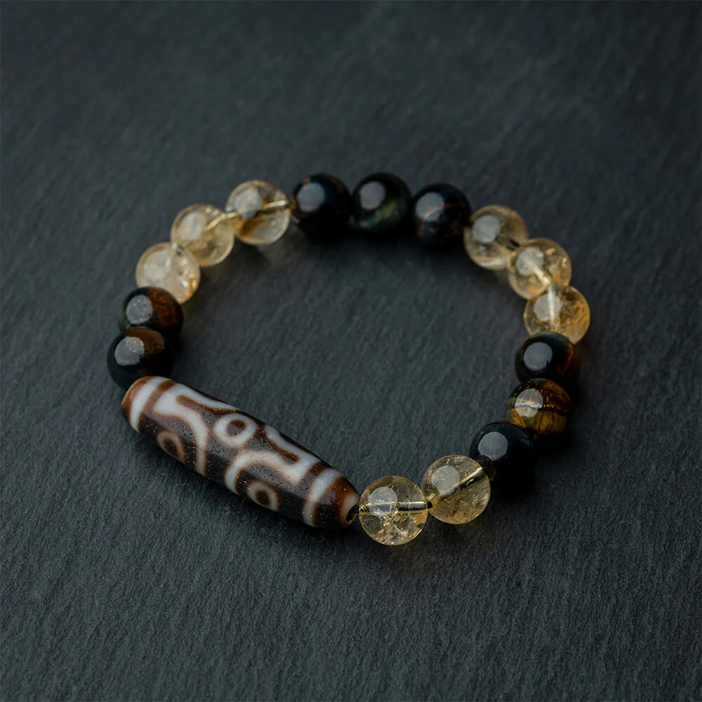 Tailored for individuals missing the stabilizing influence of the number 7 in their numerology, the 7-eye DZI Bracelet stands as a testament to precision craftsmanship by skilled Tibetan artisans. Each bead intricately showcases the carving of seven eyes, symbolizing a profound connection to seeking help, acknowledging defeat, and maintaining personal boundaries. These eyes become a compelling metaphor for the transformative journey, nurturing empowerment and encouraging individuals to embrace their divine nature. The intentional alignment of the seven eyes enhances the energetic properties of the beads, believed to amplify transformative effects and foster a profound sense of equilibrium within the wearer. Sourced from authentic Tibetan materials, the 7-eye DZI beads captivate not only with their visual allure but also resonate with the ancient energies of the Himalayas. Embrace the distinctiveness of each bead, forging a deep and personal connection that guides you on a path of self-discovery and empowerment.