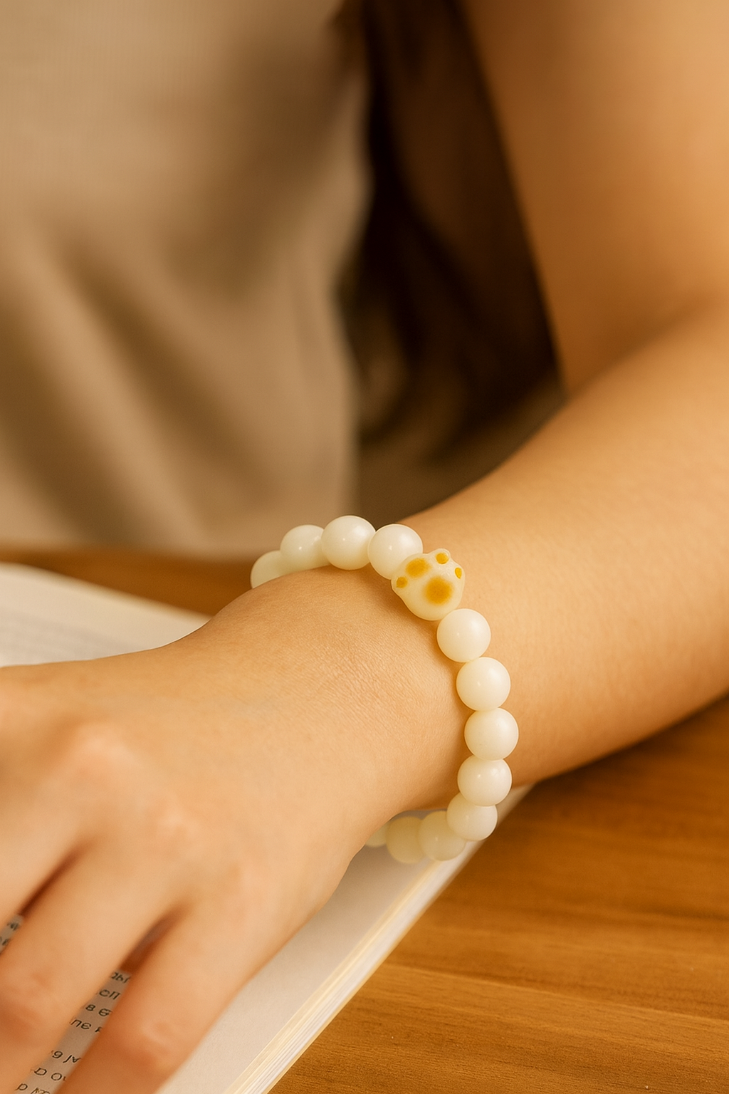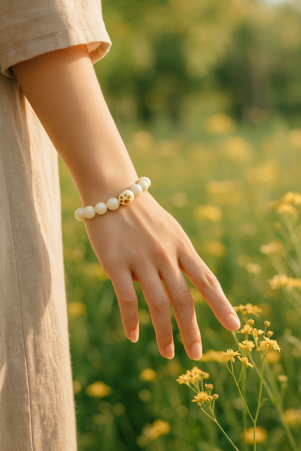 ✨ White Jade Bodhi & Cat Paw Bracelet – Elegance Aligned with Metal Energy