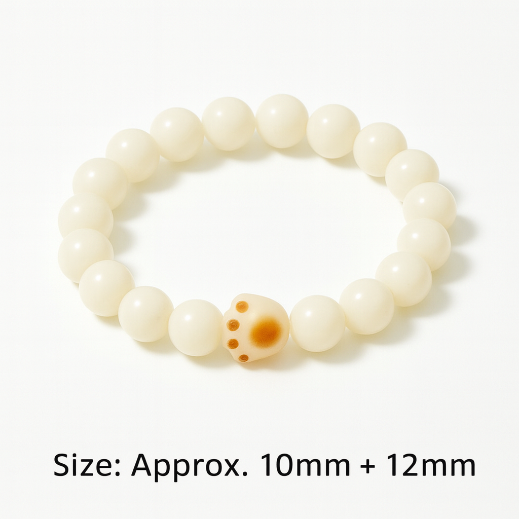 Gracefully crafted for women who resonate with the Metal element in the Five Elements (Wu Xing), this White Jade Bodhi & Cat Paw Bracelet embodies purity, calmness, and refined energy. Each smooth white jade bead symbolizes serenity and spiritual clarity, while the delicate cat paw charm adds a touch of warmth, gentleness, and protection — making it a perfect blend of elegance and vitality.